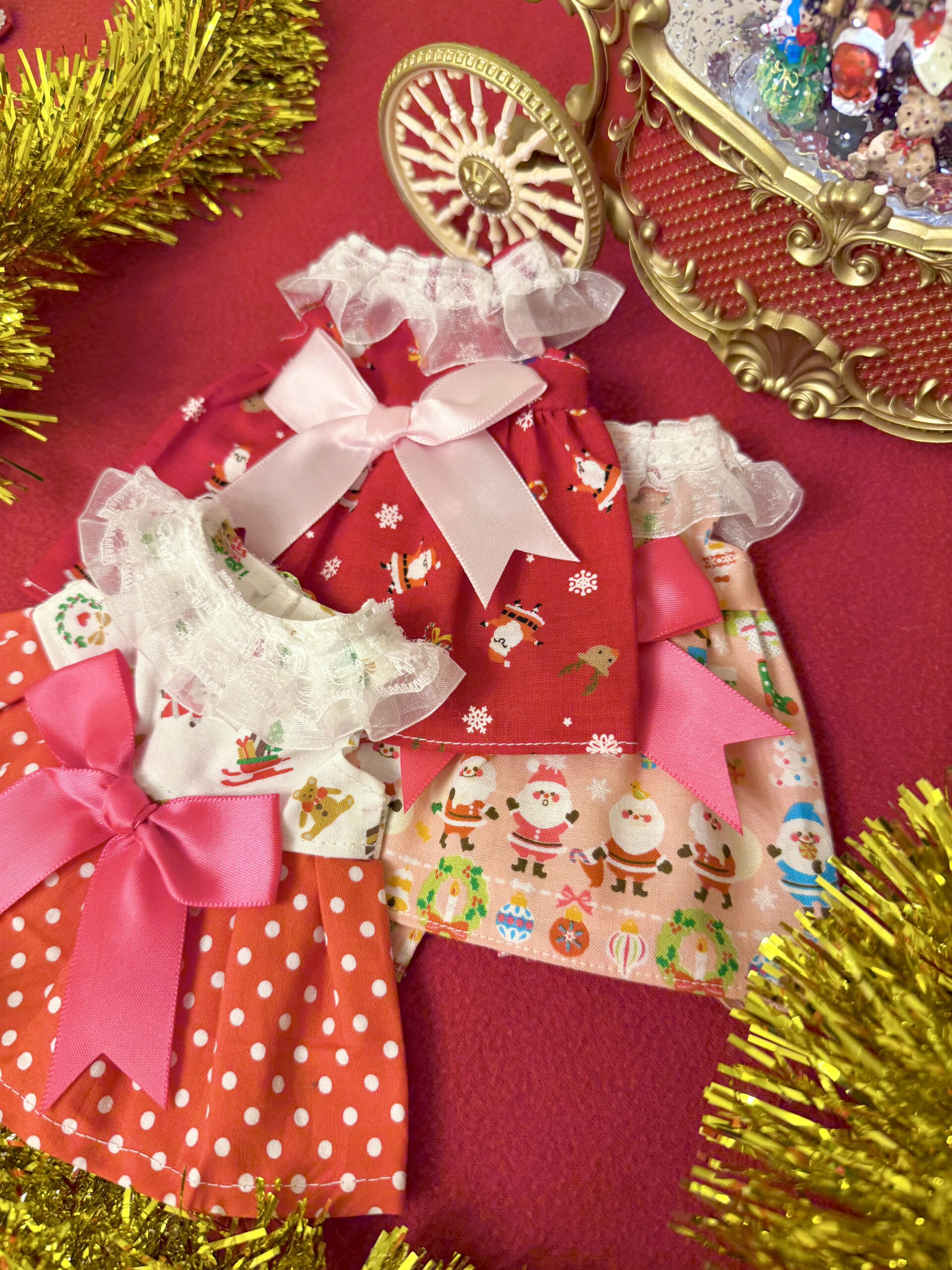 可愛いクリスマス柄の生地を見つけたので、今回はこの生地で作ってみました♪子犬をお迎えの際に着せてあげたいと思います